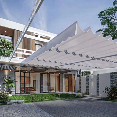Mái xếp lượn sóng: Tạo không gian mềm mại, thẩm mỹ, dễ dàng điều chỉnh độ che phủ.